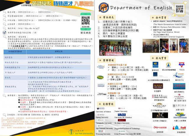 一、招生簡章:即日起公告於本校網頁http://dyu.edu.tw/su27,簡章電子檔免費下載。