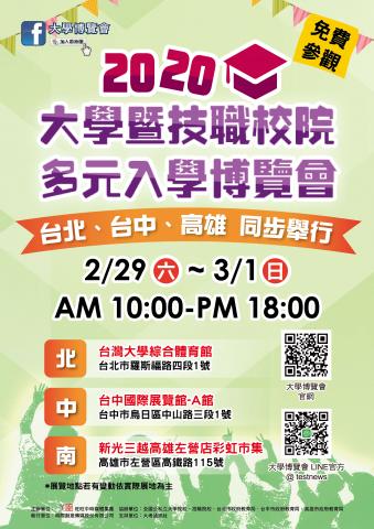 主旨:轉知時際創意傳媒股份有限公司辦理「2020大學暨技職校院多元入學博覽會」活動資訊1份,請查照。