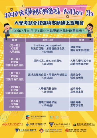 「2020大學指考選填Follow Me-大學考試分發選填志願線上說明會」