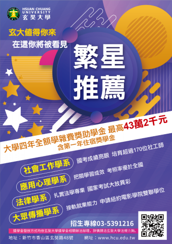 各項獎助學金資訊公告於玄奘大學網站:http://www.hcu.edu. tw/。