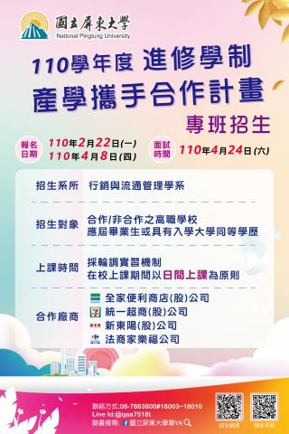 八、招生簡章已公告於國立屏東大學教務處專案業務組招生資訊網頁 (http://www.night-exam.nptu.edu.tw/files/14-1147-115288,r1654-1.php?Lang=zh-tw。),請踴躍報 名。
