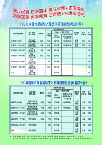 三、本校學生在學四年皆享有「國立收費」,且依指考成績前 65%(含)以上,入學後享有8至20萬獎助學金及5至30萬的海 外獎勵金。另外對於學生在學期間的多元表現設有多種獎 勵辦法。