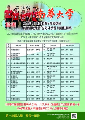 六、本校資源豐富,值得推薦給貴校同學作為升學優先選擇, 隨函檢送本校指定科目考試招生入學管道單張文宣,懇惠 予協助於貴校網站公告宣傳。
