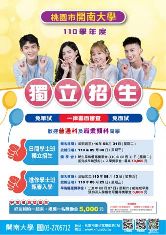 三、檢附110學年度日間學士班單獨招生暨進修學士班甄審入學管道海報電子檔一式一份如附件。